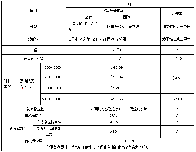 一、產(chǎn)品簡介 該化學(xué)助劑為表面活性劑。通過降低油水界面張力,使地層中的稠油從油包水的乳化狀態(tài)轉(zhuǎn)變?yōu)橐运疄橥庀虻娜榛癄顟B(tài),使稠油粘度大幅度降低,采收率提高。二、技術(shù)要求